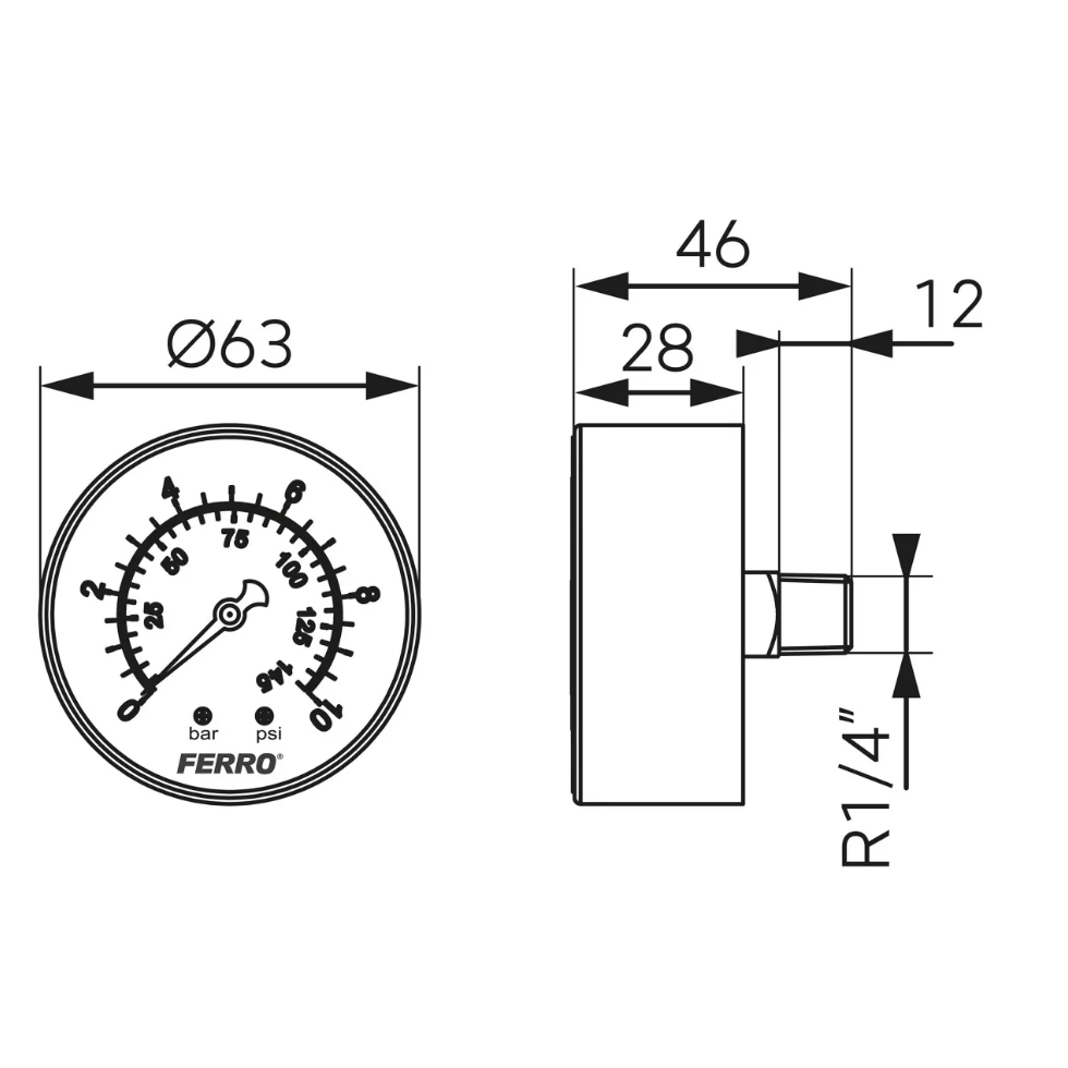 Manometr FERRO z przyłączem tylnym (aksjalny) 1/4"