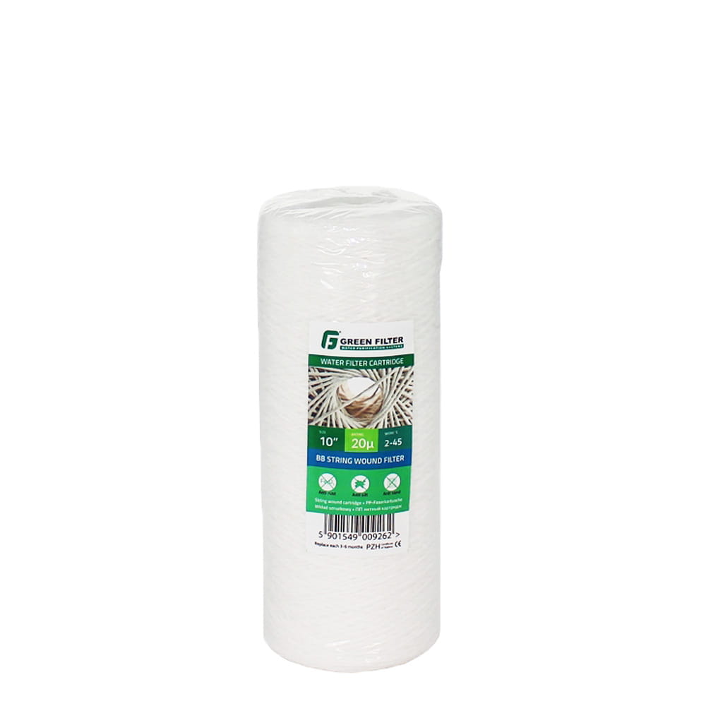 Wkłady 10” BB polipropylenowe ze sznurka nawiniętego na trzpień nie powodują znacznych spadków ciśnienia. Są odporne na działanie chemikaliów i obecność mikroorganizmów. Stosowane dla domów i przemysłu. Usuwają zanieczyszczenia mechaniczne takie jak piasek czy rdza. Uzyskiwana dokładność filtracji zależy od gęstości nawinięcia sznurka. Konstrukcja wkładów pozwala na przepływ wody od zewnętrznej do wewnętrznej warstwy wkładu, dzięki czemu większe zanieczyszczenia zatrzymywane są w warstwie zewnętrznej. Wkłady WS stosowane dla wody zimnej pracują w temperaturze od 2 ºC do 45ºC. Posiadają atest PZH. Możliwość wyboru odpowiedniego mikronażu.