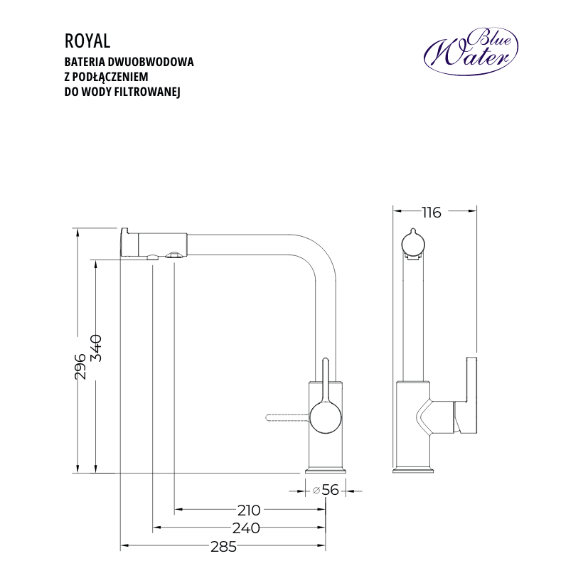 Trójdrożna bateria kuchenna Royal w kolorze czarny mat łączy w sobie nowoczesny design oraz funkcjonalność. Kran Royal renomowanej marki Blue Water wykonano z materiałów najwyższej jakości objętych atestem PZH. Dużym udogodnieniem w baterii Royal jest obrotowa wylewka, która zwiększa swobodę korzystania ze zlewozmywaka. Opcja obrotowej wylewki jest szczególnie przydatna w przypadku zlewozmywaków dwukomorowych. Kran Blue Water Royal dostępny jest także w kolorze połysk Chrom.