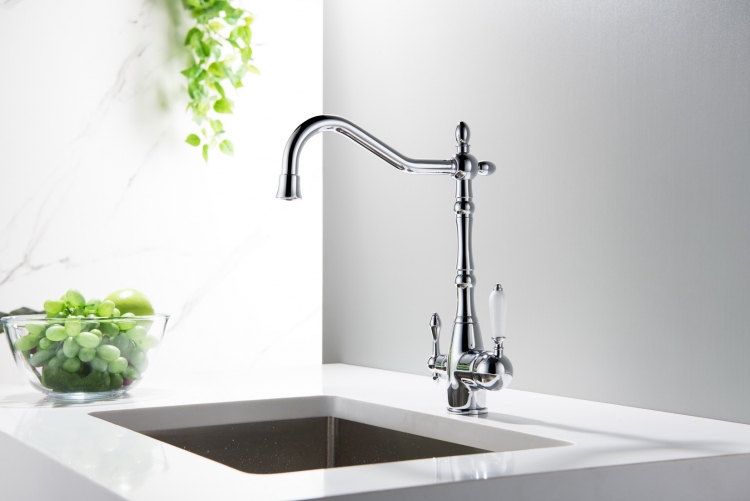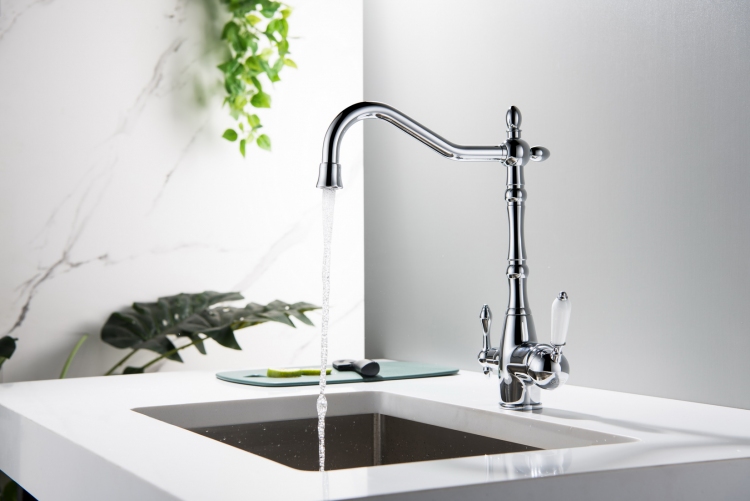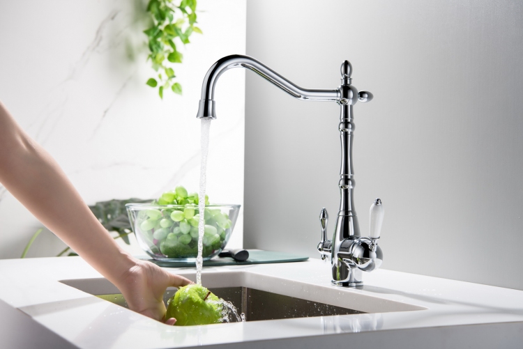 Bateria kuchenna Blue Water SAXO wyróżnia się także dwuobwodowym połączeniem. Czym jest dwuobwodowe połączenie? To funkcjonalne rozwiązanie, które pozwala na wygodne korzystanie z dwóch źródeł wody z jednej baterii. W zależności od bieżących potrzeb, możesz wybierać między zimną i ciepłą wodą pochodzącą z sieci, a wodą z filtra. Niezależne obwody doprowadzające dwa rodzaje wody do kranu SAXO w żadnym momencie nie mieszają ich ze sobą. Możesz pić przefiltrowaną wodę prosto z kranu SAXO Chrom, bez ryzyka, że została zanieczyszczona wodą z sieci.