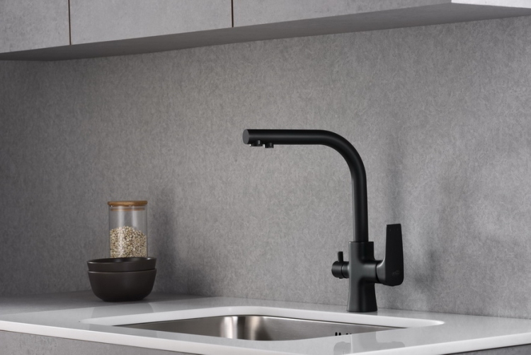 TIVOLI czarny mat to wyjątkowo praktyczna bateria kuchenna. Jej konstrukcja pozwala na podłączenie do baterii filtra wody, takiego jak np. system odwróconej osmozy. Taka opcja wyklucza konieczność montowania dodatkowej wylewki dla wody filtrowanej. Czystą i zdrową wodę będziesz mieć na wyciągnięcie ręki! Oprócz poboru wody filtrowanej, bateria TIVOLI dostarcza wodę pochodzącą z sieci wodociągowej (ciepła i zimna). Co istotne, te dwa rodzaje wody nie mieszają się ze sobą.