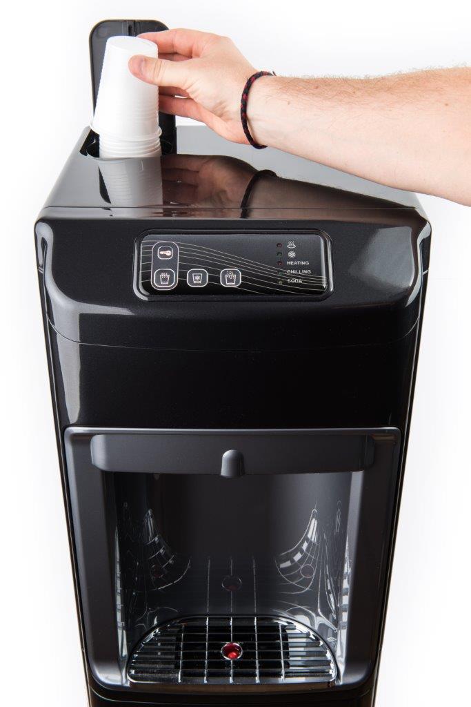 Nie musisz już biegać za kubkami. Dystrybutor ONIX posiada wbudowany automatyczny podajnik, który pomieści około 50 sztuk. Zachęcamy do zamontowania w dystrybutorze kubków papierowych, aby zredukować ilość generowanego plastiku.