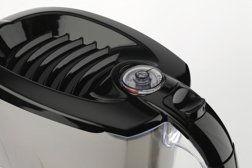 Żebrowana pokrywka typu "slider" redefiniuje wygodę. Pozwala na napełnianie dzbanka bez konieczności zdejmowania przykrywki. Wystarczy puścić delikatny strumień wody na żebrowaną część pokrywki i gotowe. Wygodnie, szybko i bez komplikacji.