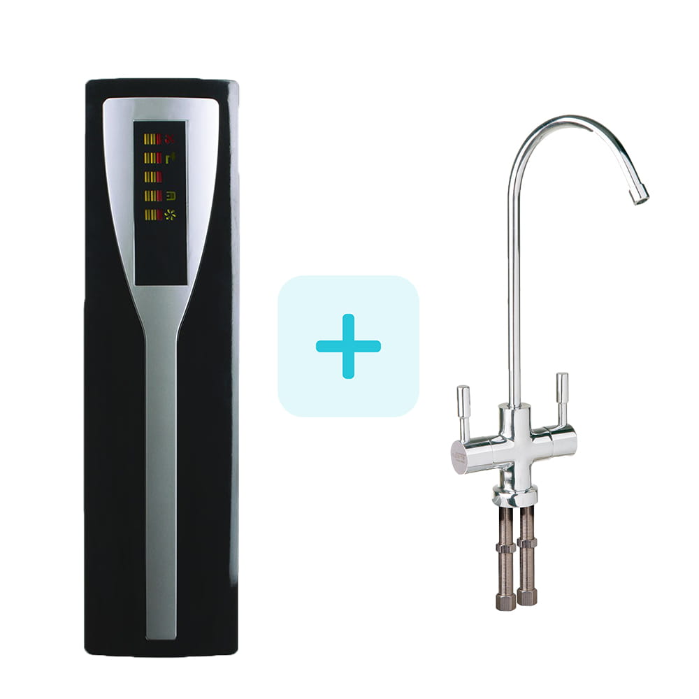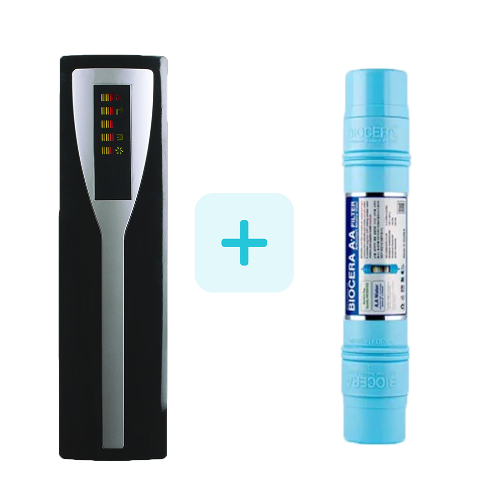 W naszym sklepie możesz kupić filtr Pad+ z wariantem jonizacji. Dlaczego warto zamontować jonizator wody z systemem do nanofiltracji? Dodatkowy wkład Biocera alkalizuje wodę. Wzbogaca ją także procesem jonizacji. Jonizator podnosi pH wody do wartości 9,5 pH. Montując Pad+ z jonizatorem, uzyskasz wodę wzbogaconą minerałami. Wkład Biocera podniesie zawartość w wodzie potasu, magnezu i wapnia. Woda po jonizacji skuteczniej nawadnia organizm, dzięki zmniejszonym klastrom wody. Woda po wkładzie Biocera odkwasza organizm. Woda po systemie Pad+ z jonizatorem pomaga w eliminacji wolnych rodników. To dzięki zawartości aktywnego wodoru - wolnych elektronów. W ten sposób uzdatniona woda ma korzystne właściwości zdrowotne: przeciwnowotworowe czy przeciwmiażdżycowe. Eliminacja wolnych rodników zapobiega ponadto przedwczesnemu starzeniu się organizmu. Pad+ z jonizatorem jest zdecydowanie warty uwagi. Wybierz dodatkową jonizację jako wariant produktu Pad+. Dodatkowa podwójna wylewka pozwoli Ci korzystać osobno z wody z minerałami.