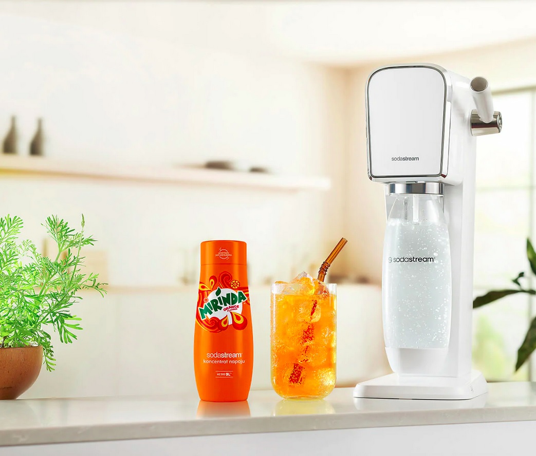 - Następnie dorzuć koncentrat Sodastream Mirinda.
