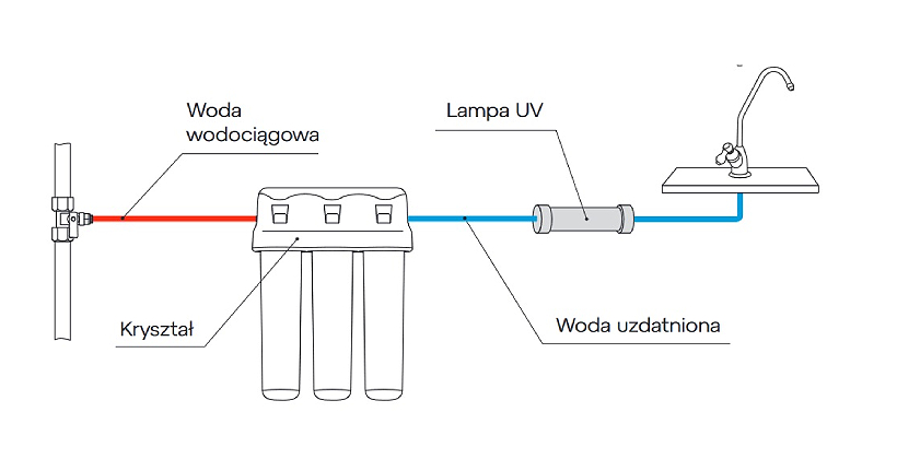 - Woda z kranu całkowicie oczyszczona z groźnych bakterii i wirusów.