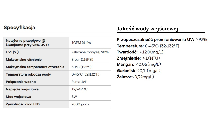 - Niskie koszty eksploatacji. Żywotność lampy ze światłem UV LED wynosi 7000 godzin nieprzerwanej pracy (około 300 dni).