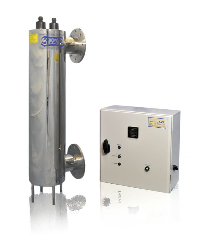 Sterylizator UV TM 2 polskiej firmy TMA to urządzenie wyposażone w profesjonalny układ sterowania z systemem alarmowym. Przepływ maksymalny lampy TMA TM 2 wynosi 46 m3/h, natomiast waga z układem sterowania to 52 kg. Lampa z serii TM wykorzystuje 2 promienniki amalgamatowe o mocy 210 W i bardzo wysokiej żywotności. Trwałość znamionowa promienników sięga aż 16000 godzin. Sterylizator TM 2 to idealne rozwiązanie przy średnich i dużych instalacjach wodnych. Stosowany w takich obiektach jak szkoły, hotele, zakłady przemysłowe, baseny, jacuzzi czy obiekty rekreacyjne. Przed montażem sterylizatora TM 2 warto dokonać filtrację mechaniczną, aby do urządzenie nie przedostały się żadne zanieczyszczenia typu piasek, muł czy rdza. Obecność zanieczyszczeń mechanicznych może doprowadzić do usterki lampy UV.