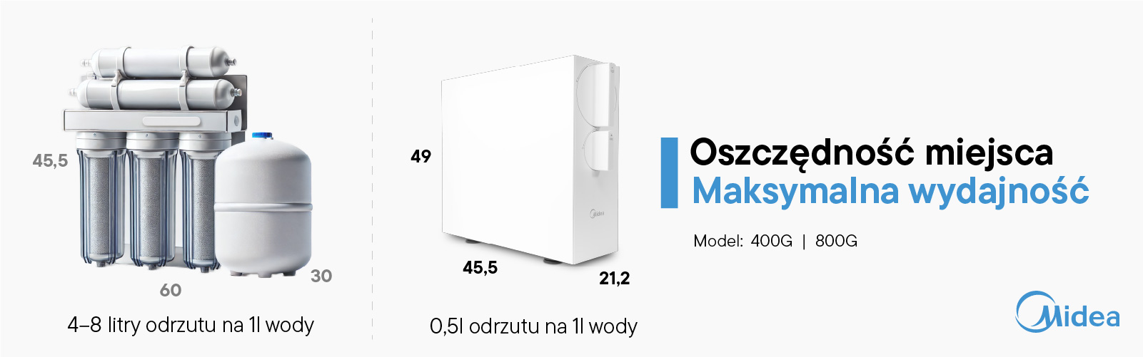 Midea 400GPD – Zaawansowany filtr RO z pompą