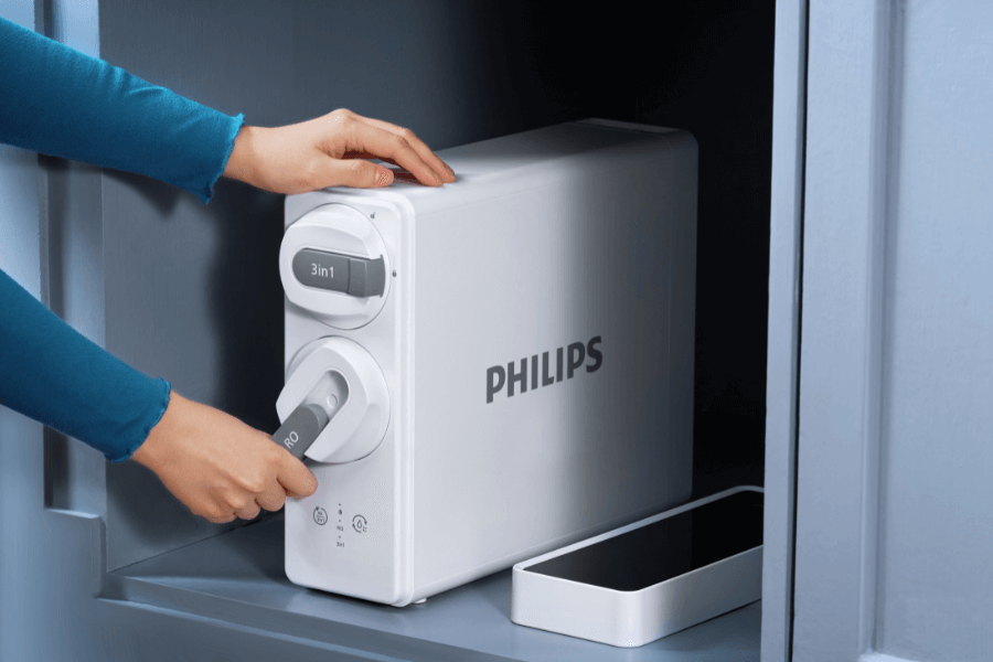 System RO Philips AUT4030R600 zamontowany jako podzlewowy filtr do kuchni zapewni na co dzień czystą wodę do picia o doskonałym smaku. Philips AUT4030R600 został udoskonalony, aby usuwać PFAS, PFOA i wirusy, a jego wydajność wynosi aż 2271 litrów dziennie, co gwarantuje stały dostęp do czystej wody dla całej rodziny. Urządzenie oferuje dwa rodzaje wody: filtrowaną, która przechodzi przez filtr 3w1 zachowujący minerały, oraz oczyszczoną, która dodatkowo przechodzi przez membranę osmotyczną, zapewniając wodę idealnie czystą.